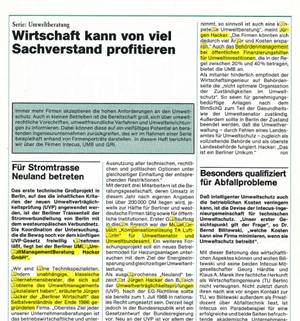 "Für Stromtrasse Neuland betreten" in "Die Berliner Wirtschaft" vom 02. September 1988