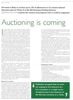 "Auctioning is coming" Gastbeitrag in "Carbon Finance" vom 09. Februar 2007