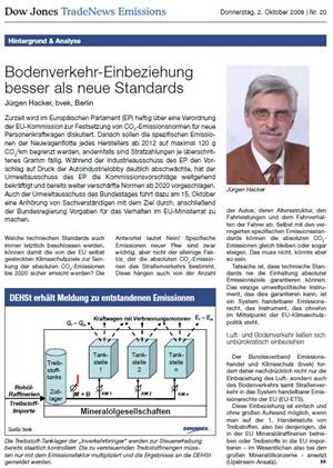 "Bodenverkehr-Einbeziehung besser als neue Standards" Gastbeitrag in "Dow Jones TradingNews Emissions" vom 02. Oktober 2008