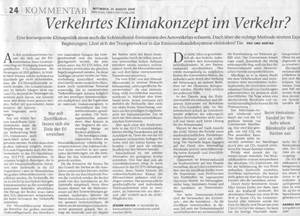 "Verkehrtes Klimakonzept im Verkehr?" Gastbeitrag in "Financial Times Deutschland" vom 27. August 2008