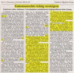 "Emissionshandel könnte teuer werden" im "Handelsblatt" vom 12. Oktober 2006