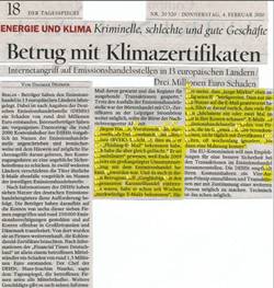 "Betrug mit Klimazertifikaten" in "Der Tagesspiegel" vom 4. Februar 2010