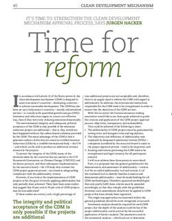 "Time for reform" Gastbeitrag in "Trading Carbon" von Mai 2008
