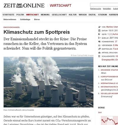 "Emissionshandel Klimaschutz zum Spottpreis" in "ZEIT ONLINE" vom 18. Januar 2012